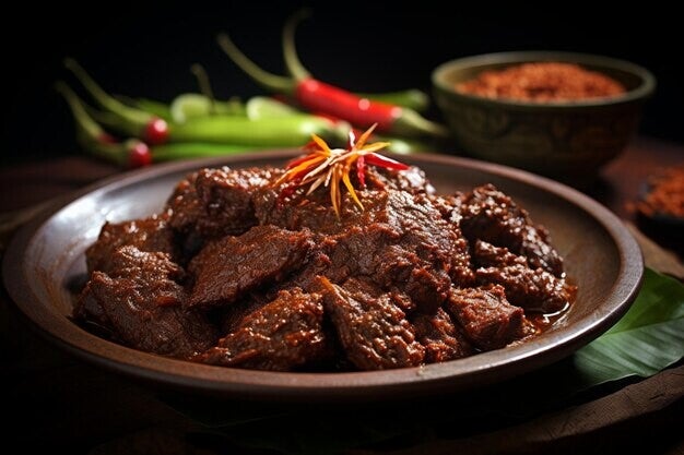 Javaans/Indonesisch gerecht genaamd "Opor daging" – een heerlijk stoofpotje van rundvlees in kokosmelk. Dit traditionele gerecht zit bomvol kruiden en wordt vaak langzaam gegaard, zodat het vlees supermals wordt en alle smaken lekker diep intrekken.
