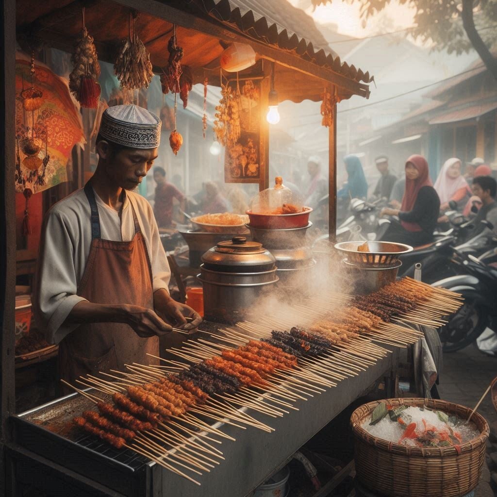 De Indonesiër maakt van saté een ware kunst, dus schrik niet als de Tukang saté ineens een hele kip aan het roosteren is; dat vinden ze daar erg lekker.