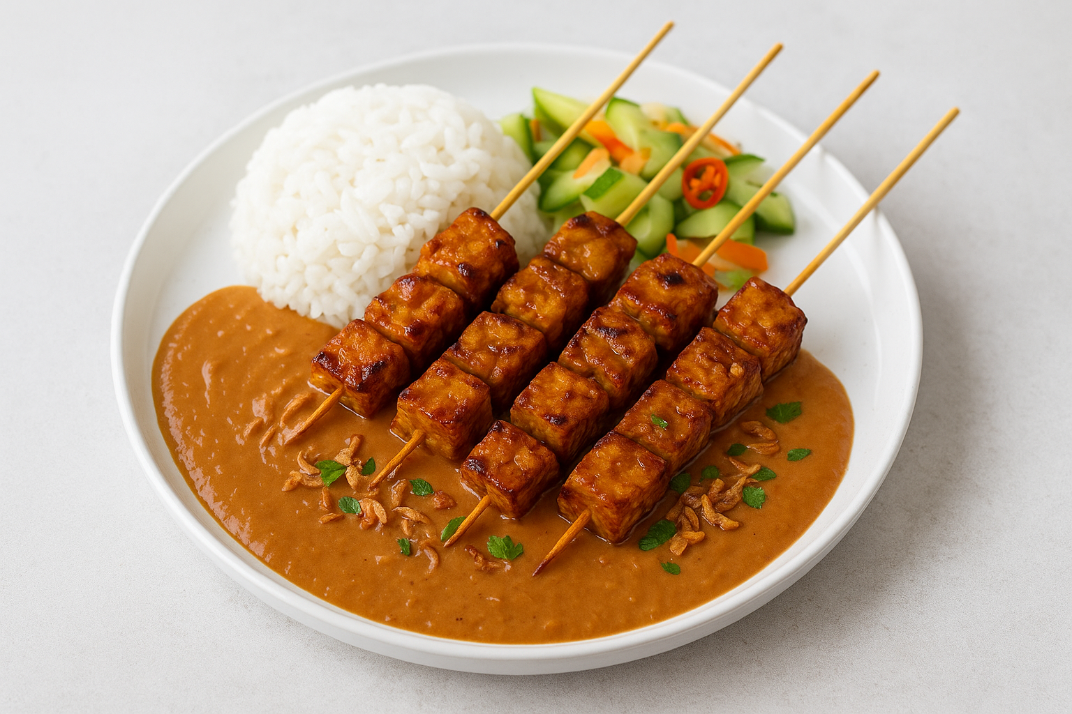 Er zijn allerlei soorten vegetarische saté, en geloof me, die zijn echt superlekker. In Indonesië zelf kom je ze niet zo vaak tegen als de klassieke kip- of varkenssaté, maar er zijn tegenwoordig genoeg leuke, moderne varianten. Neem bijvoorbeeld dit recept voor Saté Tempeh – misschien wel de populairste vegetarische saté die er is, én nog lekker voedzaam ook. Tempeh heeft zo’n lekkere, nootachtige smaak en zuigt marinades op als een spons. Combineer dat met een romige pindasaus en het is echt genieten.